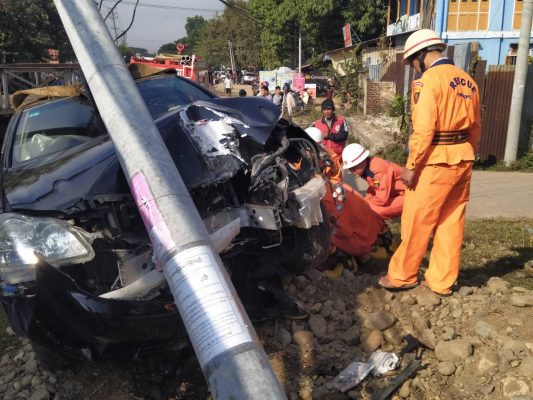 မိုးကောင်းတွင် ယာဉ်တစီးက ဆိုင်ကယ်နှစ်စီးနှင့်ဓာတ်တိုင်အား ဆင့်ကဲတိုက်မှု ဖြစ်ပွား